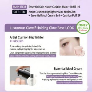JUNGSAEMMOOL Essential Skin Nuder Cushion Set (+Refill+ Mini Cushion Highlighter #Halo Gleam +Puff 2P +Mool Cream)