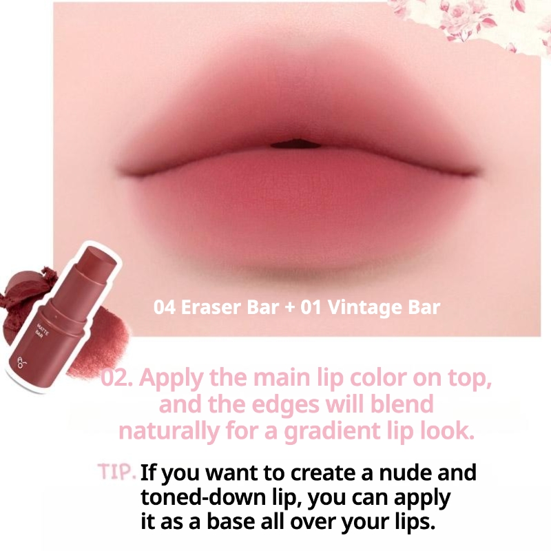 | 01 Vintage Bar | Signature Color / Blush | A sophisticated, muted rose-pink that provides a natural flush. Ideal for creating a romantic, “MLBB” (My Lips But Better) look. |