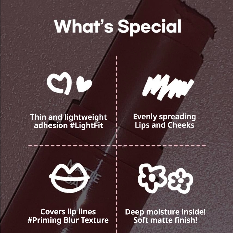 Achieve the coveted “idol-skin” look with a versatile, high-precision bar designed by top Korean celebrity makeup artists. This dual-purpose essential acts as both a soft-focus lip color and a seamless cream blush, delivering a weightless, airbrushed finish that looks as natural in person as it does under studio lights. Its specialized priming texture blurs away imperfections and fine lines, leaving behind nothing but a sophisticated, velvet-matte glow.