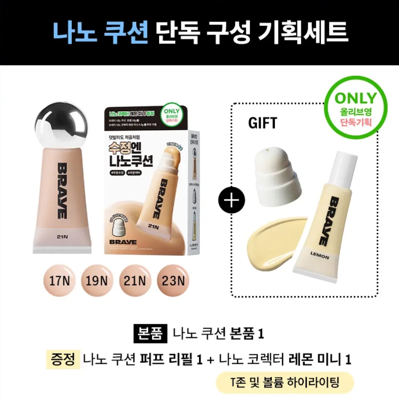 BRAYE Nano Cushion Set [#4 Colors](+Refill Puff + Mini)