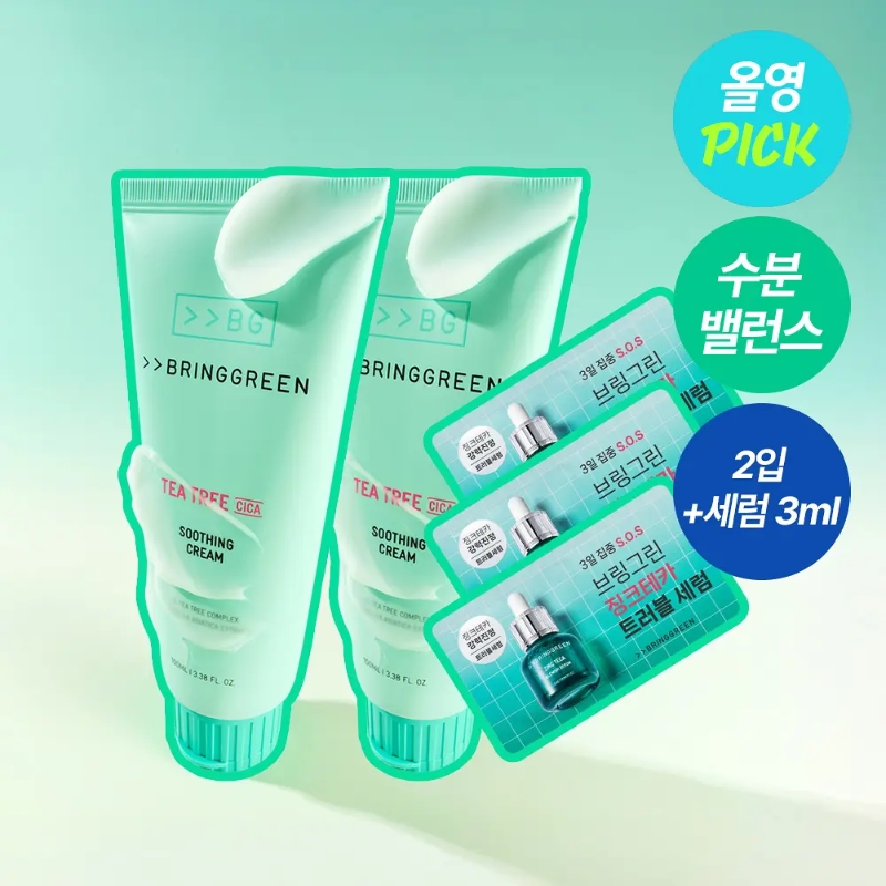 BRINGGREEN Tea Tree Cica Soothing Cream Plus 200ml Set (+ Serum 3p)