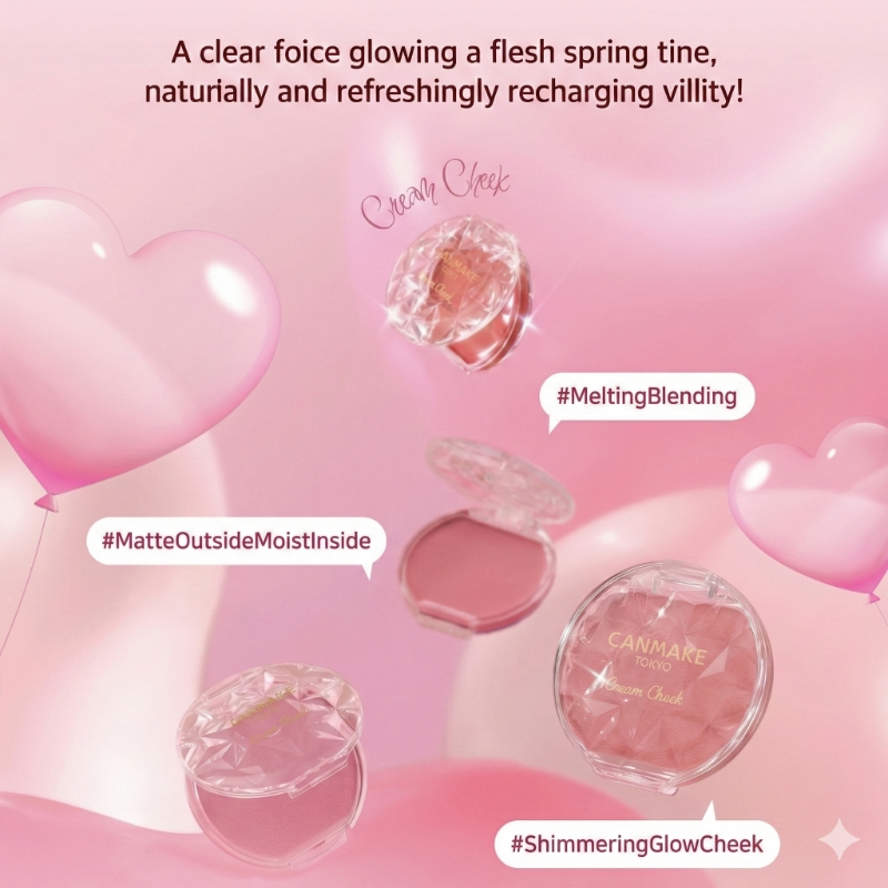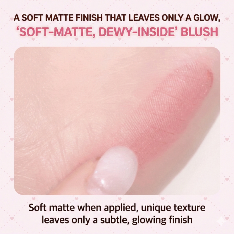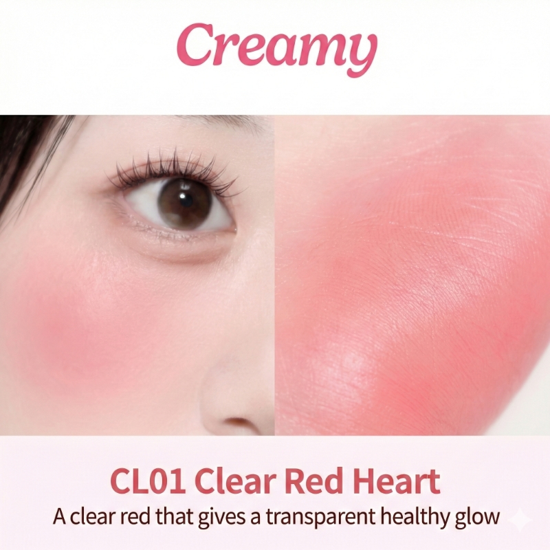 - Dip the cream cheek paste on your fingertips, and then lightly apply it dotted on your cheeks like a stamp.
