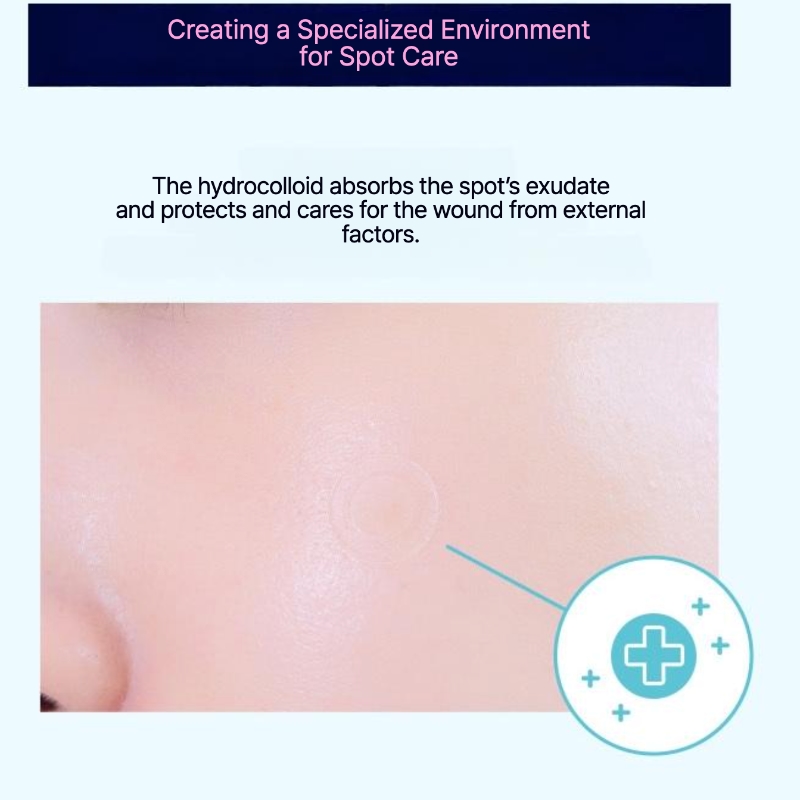 - The central hydrocolloid, thick for better absorption, and the edge round, 1mm thin, covers without showing on the outside with its non-glossy patch that is also water-resistant for everyday waterproofing.