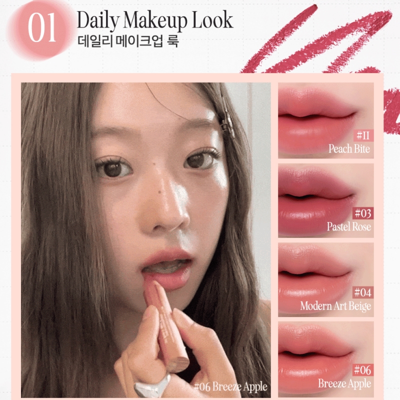 Refreshing Apple Red (#06): A vibrant, true-red shade that mimics the natural flush of healthy skin, designed to instantly vitalize and brighten the face.