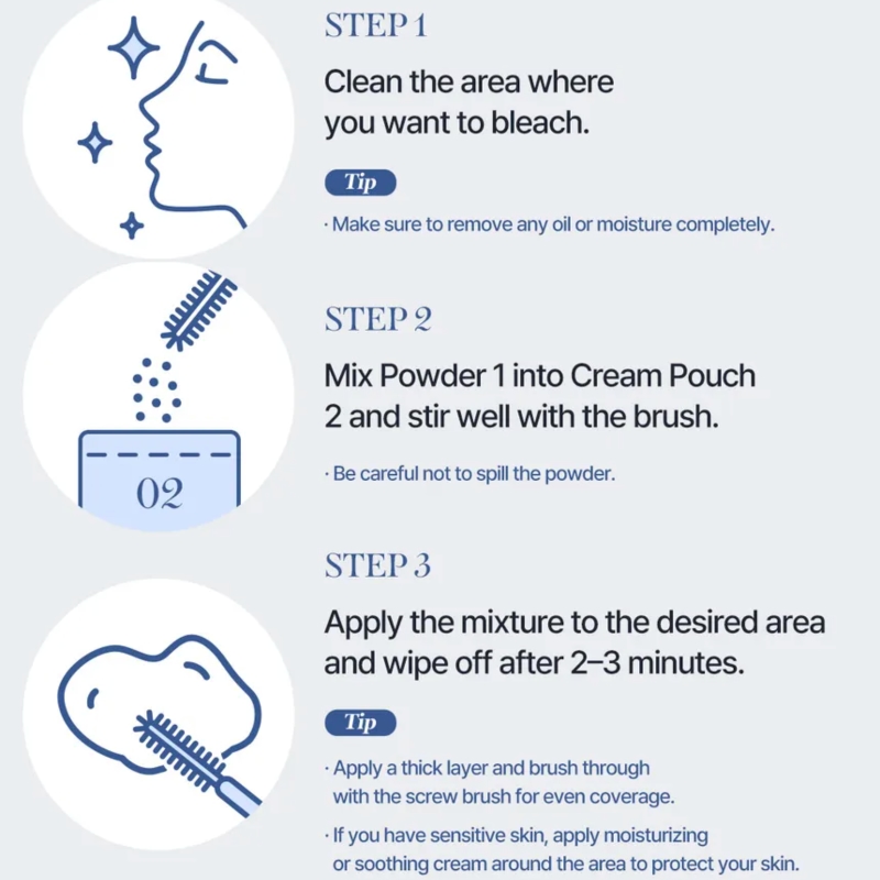 2. Put a bag of powder into a cream pouch and mix well with the included brush.
