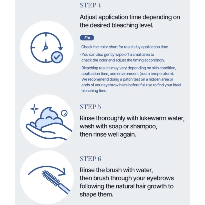 A self brow bleach set helps creating the desired brow color in just 3-5 minutes.