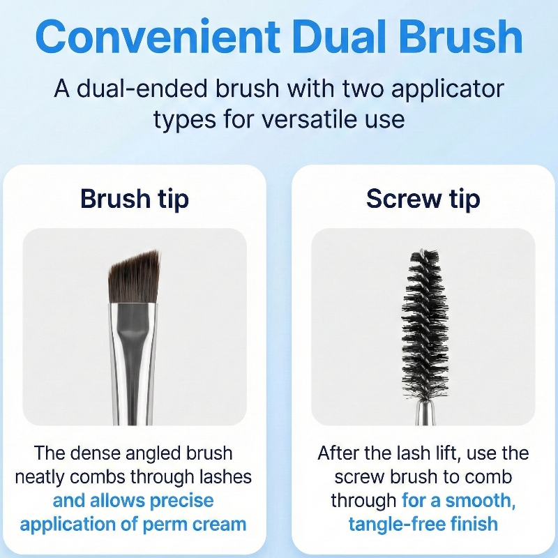 - Finishing: Carefully remove the rod and use the screw brush to groom your lifted lashes.