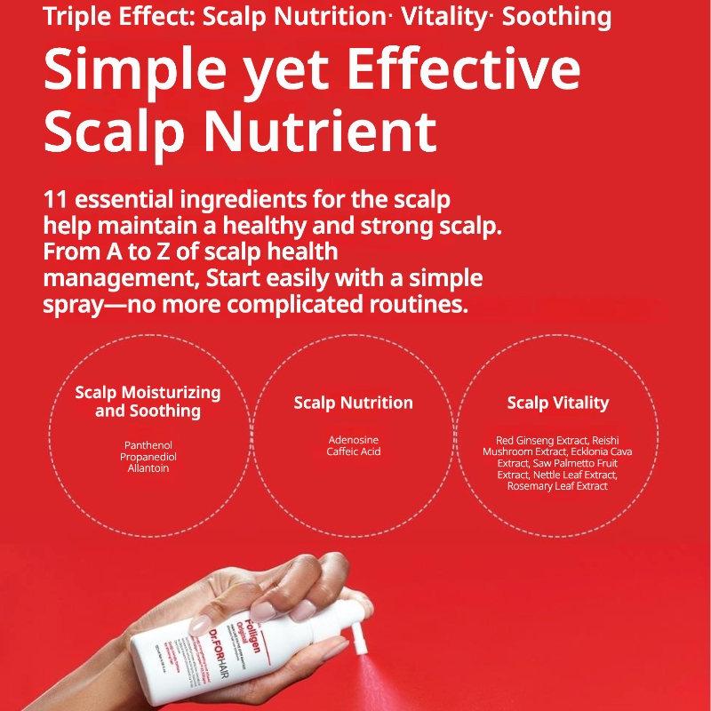 A spraying scalp nutrition supplement that contains the know-how of the scalp care center.