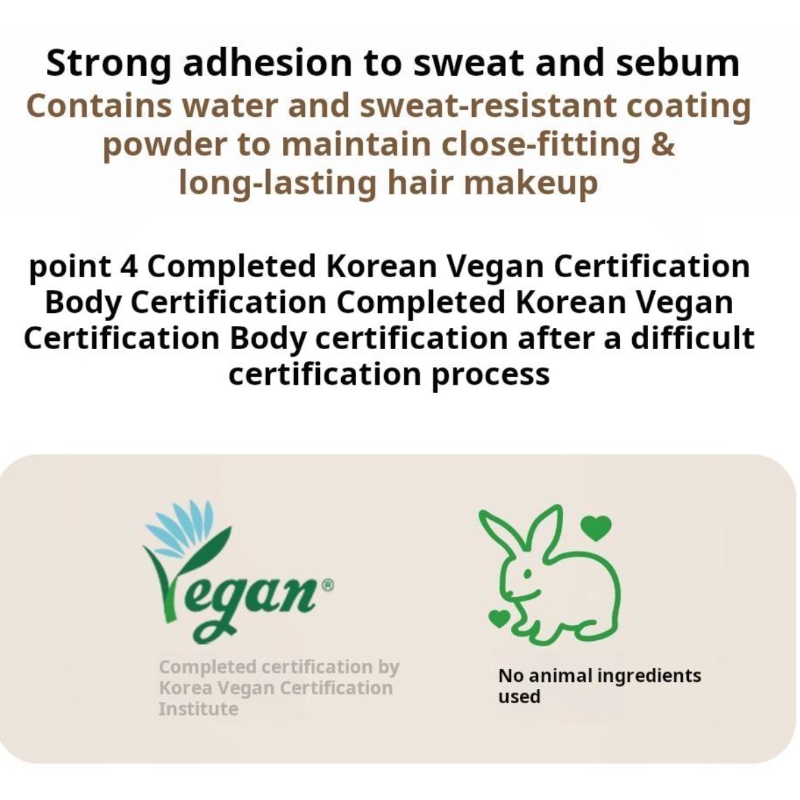 Coating Powder Technology: Enhances water resistance and ensures the pigment adheres tightly to the hair and skin for extended wear.
