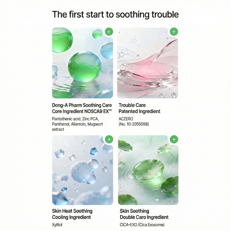 - Panthenol + Allantoin: Core calming ingredients from the original Nosca9 Trouble Serum to support barrier comfort and relief.