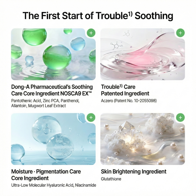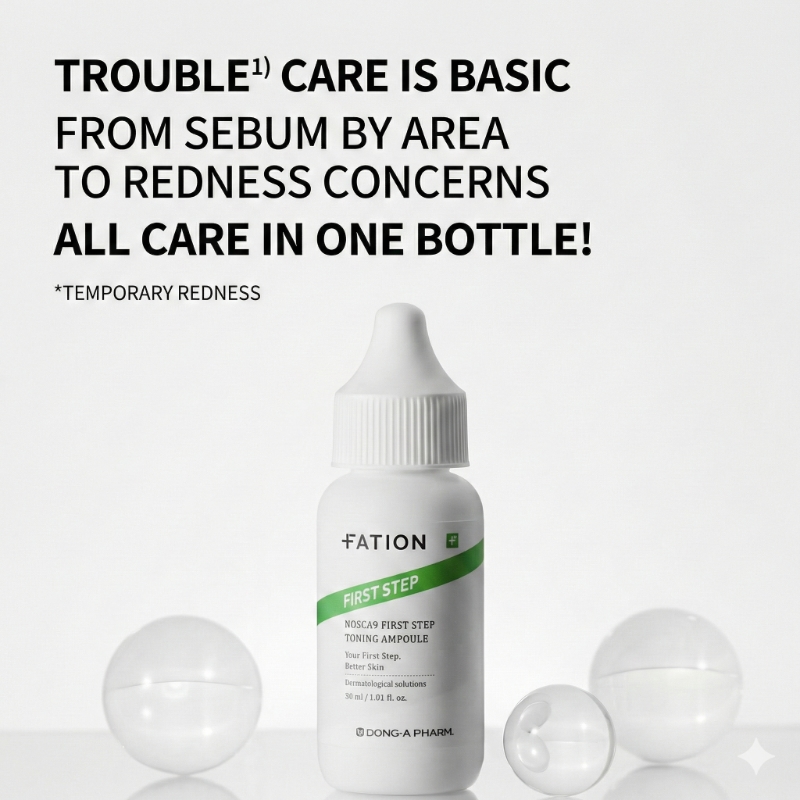 - Nosca9™ Trouble Solution: Based on FATION’s dermatology-inspired system optimized for young & sensitive skin.