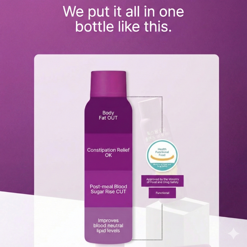 | Raw material’s name and content | Indigestible Maltodextrin{Corn:Foreign-made (Russia, Hungary, Serbia, etc.)}, [Corn Silk ·Lemon Balm Extract Complex(CL-5MOA)[Corn Silk Extract Powder{Corn Silk Extract (China)}, Lemon Balm Extract Powder{Lemon Balm Concentrate (France)], Water, Botanical Mix Extract Fermented\Botanical Mix Extract Fermented{Chrysanthemum (Korea), D-Sorbitol, Lactulose, Tahibo Concentrate (Brazil)], Lactulose, Blueberry Concentrate, D-Sorbitol, Aronia Concentrate, Ctric Acid, Berry Mix Concentrate, Vegetable Mix Concentrate, Enzymatically Modified Stevia, Orange Concentrate, Trisodium Citrate, Mannitol, Malt Extract, Vegetable Mix Concentrate Powder, Magnesium Oxide, Fruit & Vegetable Mix Powder, Elastin Extract Mix Powder, Fish Collagen, Milk Protein Concentrate Powder, Zinc Oxide, Vegetable Mix Powder, Vitamin B12 Concoction (Dextrin, Trisodium Citrate, Ctric Acid, Vitamin B12), Green Tea Extract Powder, Thiamine Mononitrate, Nicotinamide, Vitamin C, Vitamin B2, Pyridoxine Hydrochloride Milk, Wheat, Peach, Tomato Included |
