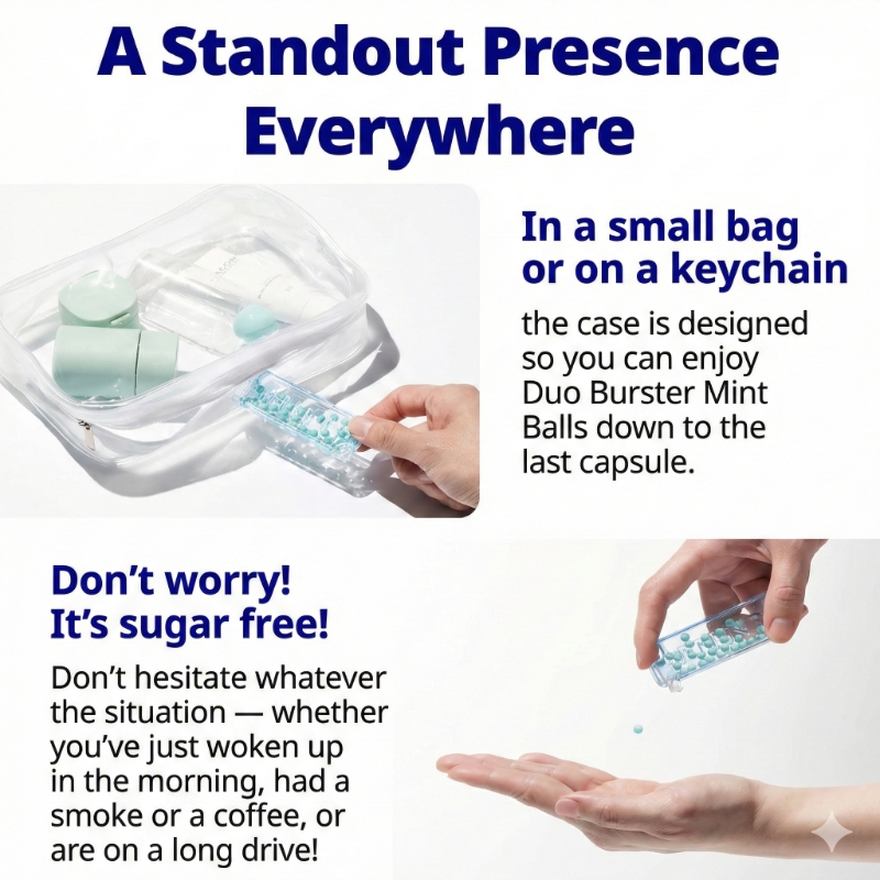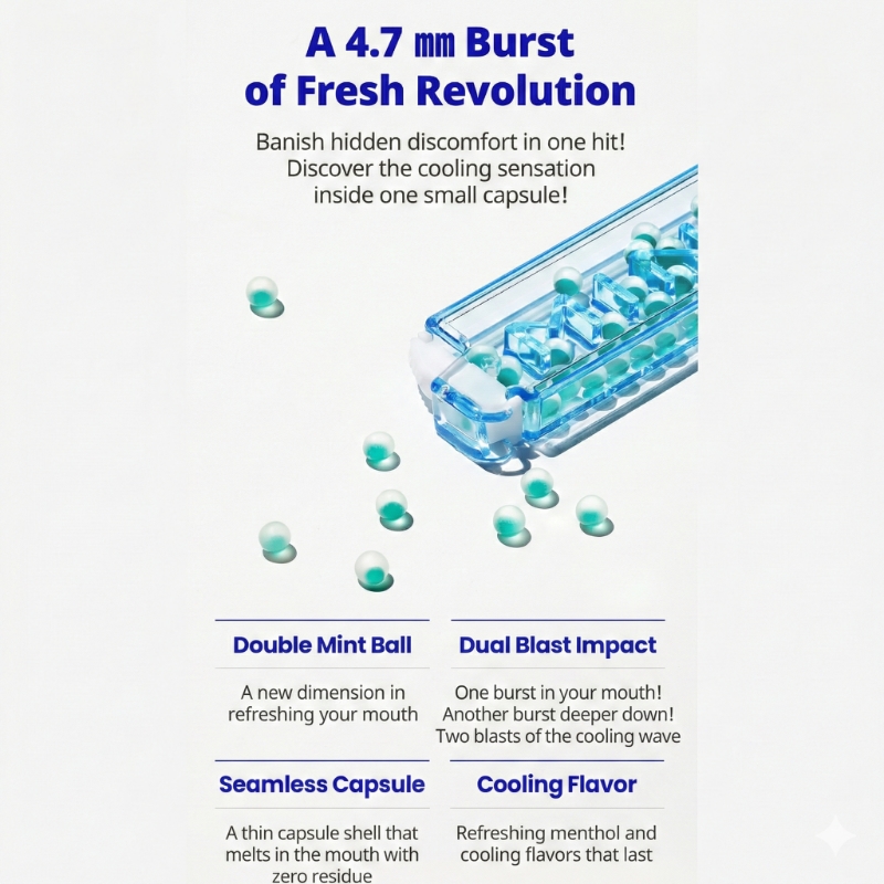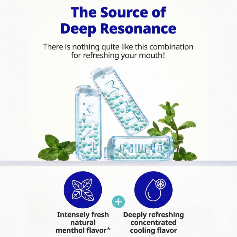 | Ingredients | MTC Oil (Coconut Oil, Palm Oil), Aroma 1 (Menthol), Aroma 2 (Peppermint), Aroma 3 (Vanilla), Aspartame (Sweetener,Phenylalanine Included), Soy Lecithin, Aroma 4 (Cooling), Sucralose (Sweetner) ※Capsule Material: Gelatin (Pig Skin), D-sorbitol (Sweetener), Glycerin, Sucralose (Sweetner), Food Green No. 3 (Color) Contains soybeans and port |
