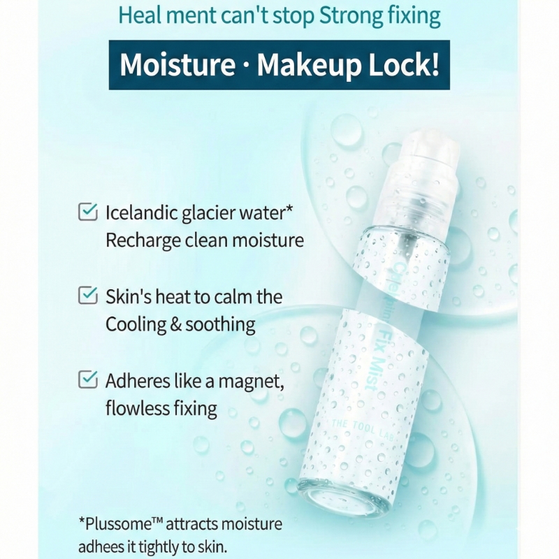 Made with special formula to give long-lasting glowing base makeup. The glacial milk cooling fixing mist provides skin cooling and soothing at the same time.