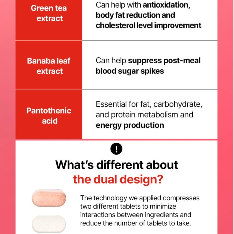 • Triple-Care Formula: Simultaneously manages body fat, blood sugar spikes after meals, and daily energy levels in one go.