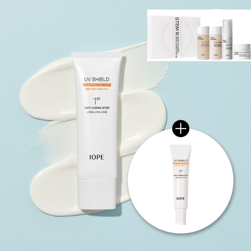 IOPE UV Shield Sun Protector SPF50+PA+++ 50ml+15ml Set (+Stem III Experience Trial Kit)