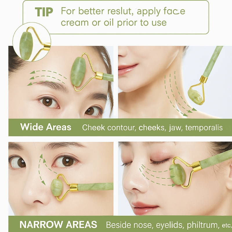 Lymphatic Drainage: When used correctly, the roller gently massages lymph fluid toward drainage points (near the ears, neck, and collarbone), aiding the body’s detoxification process and further reducing bloat.
