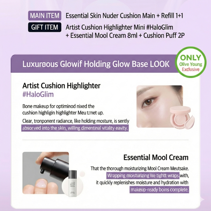 12g*2ea (+Refill+Mini Cushion Highlighter 2g #Halo Gleam+Puff 2P+Mool Cream 8ml)