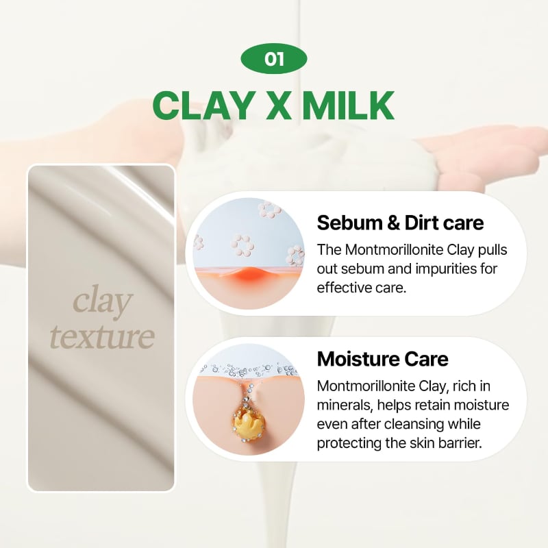 The fine clay particle provides gentle cleansing without skin irritation and helps release sebum and wastes inside pores.