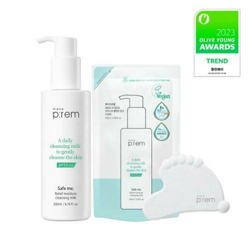 makeprem Safe Me Relief Mositure Cleansing Milk 200ml Set (+Refill+ Guasha )