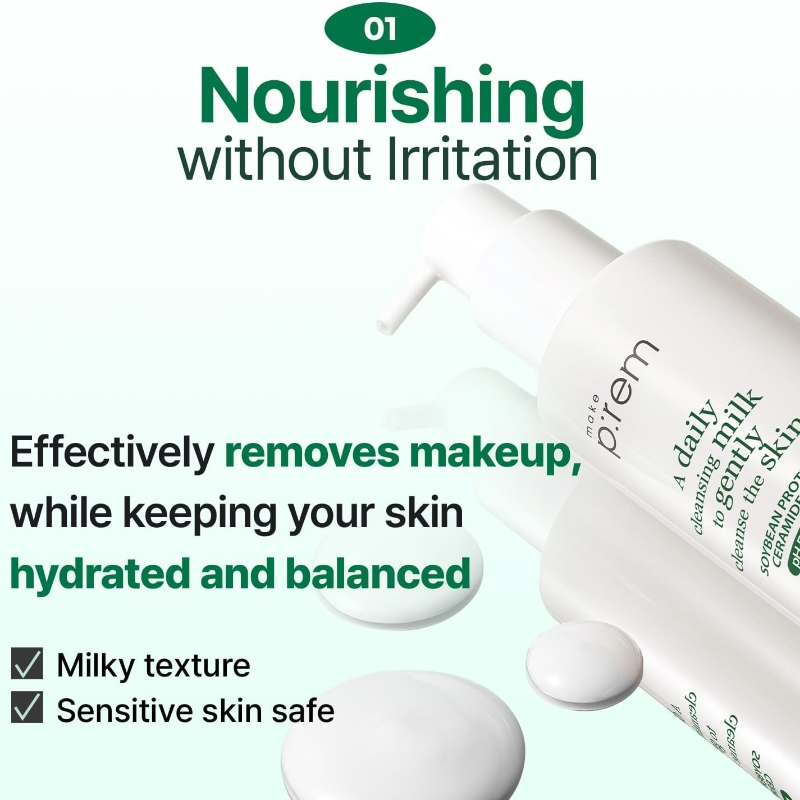 makeprem Safe Me Relief Moisture Cleansing Milk 200ml Set (+Refill 200ml+Heart Konjac Sponge*2ea)