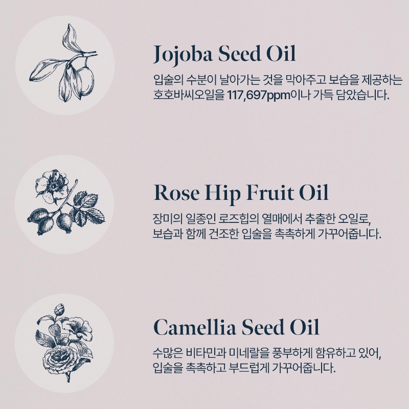 - Camellia Japonica Seed Oil: Rich in nutrients, this oil nourishes and conditions the lips for a healthy, vibrant appearance.