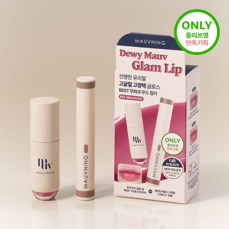 MAUVNING Dewy Mauv Glam Lip Set [#03 Moauvlish] (+Blur Mousse Lipstick 00 Nudebase)