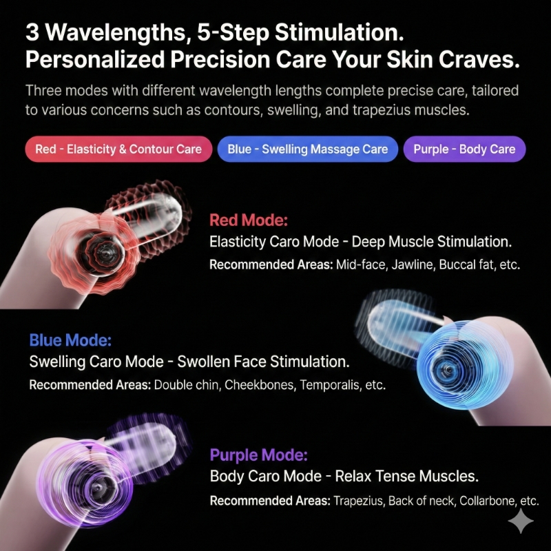 Dynamic Lifting & Contouring: The specialized face roller attachment mimics a professional massage, targeting facial muscles to help define the jawline and reduce puffiness.