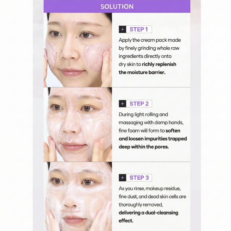 Dual-Action Formula: Works as both a quick nourishing mask (pack) and a rich foaming cleanser, offering versatile care depending on your skin’s daily needs.