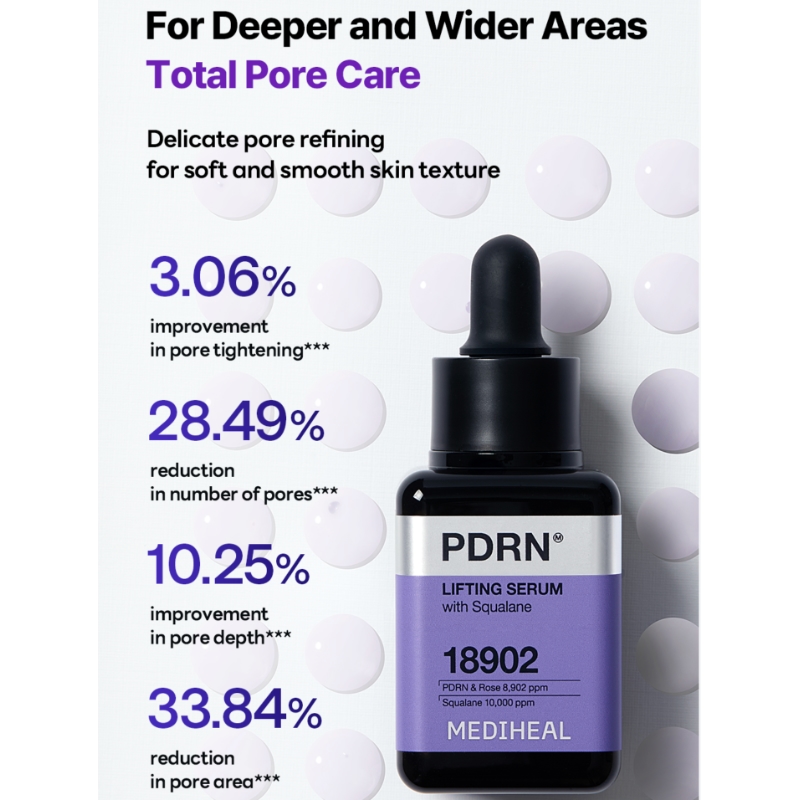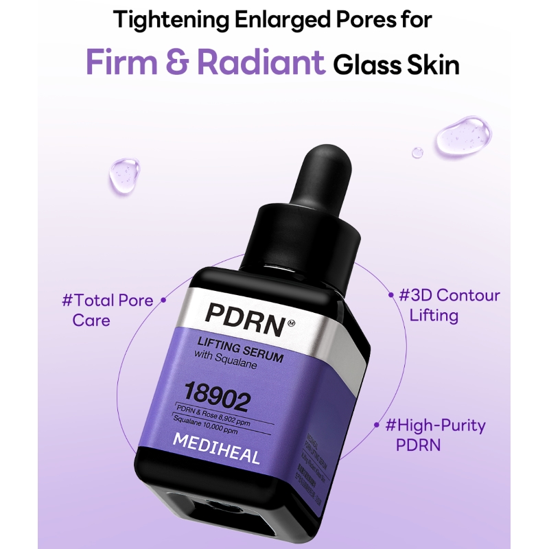 The MEDIHEAL PDRN Lifting Serum is a skincare product from the popular Korean brand MEDIHEAL, known for its sheet masks and effective serums. This serum is specifically formulated to address skin elasticity, pores, and overall skin health.