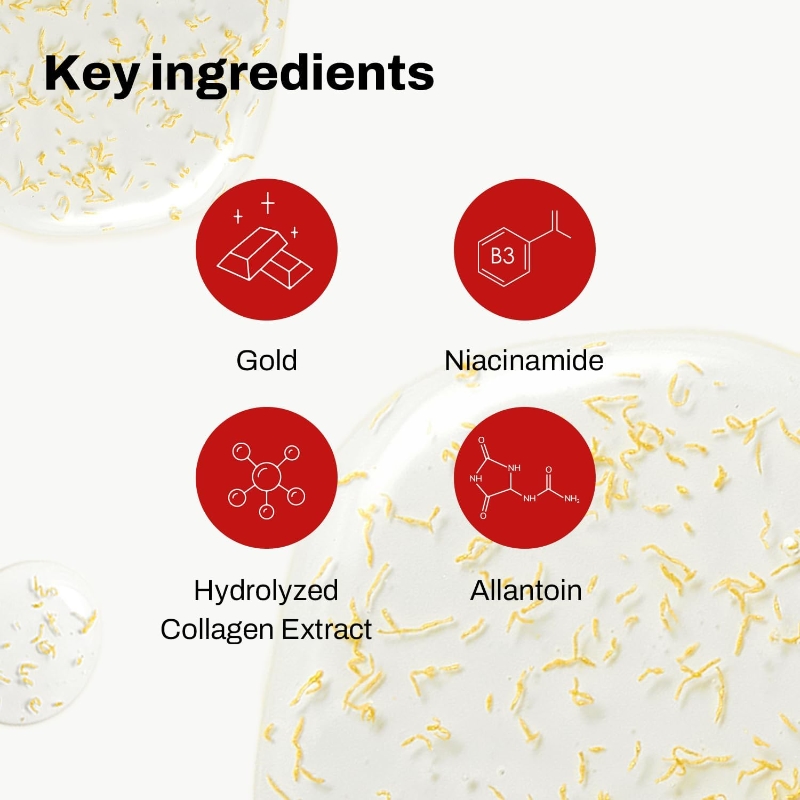 Radiance Boost: Infused with gold threads that enhance luminosity, giving your skin a healthy, “glass-skin” glow.