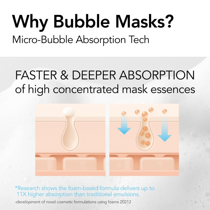 Micro-Bubble Technology: Upon application, the formula transforms into millions of tiny, dense bubbles that gently massage the skin and deliver active ingredients deep into the dermis without irritation.