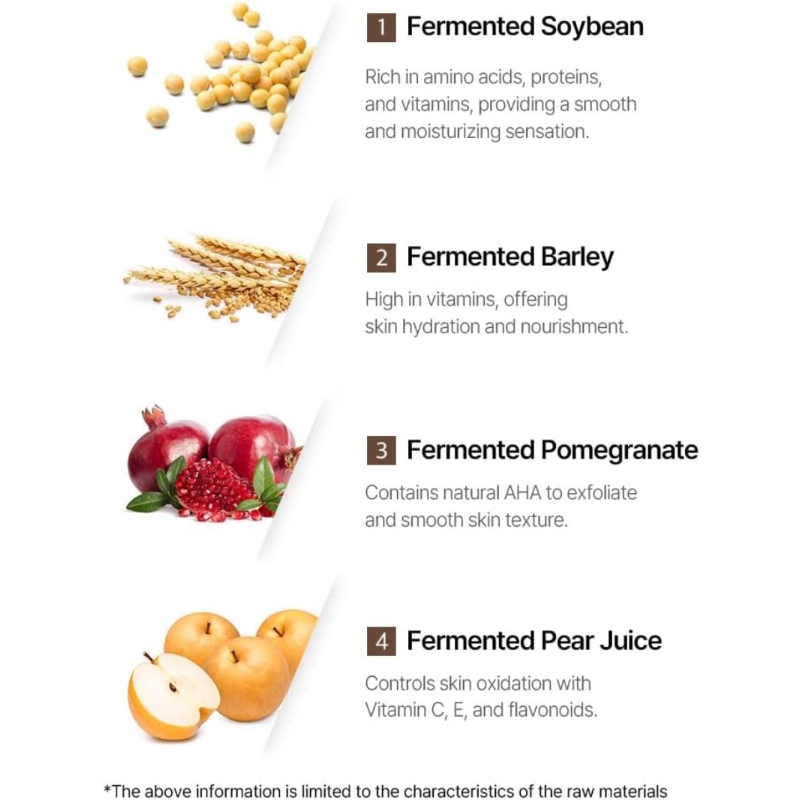 Fermented Pear: Rich in antioxidants (Vitamin C & E) to help brighten the complexion.