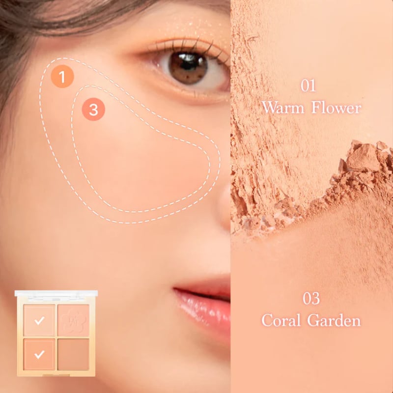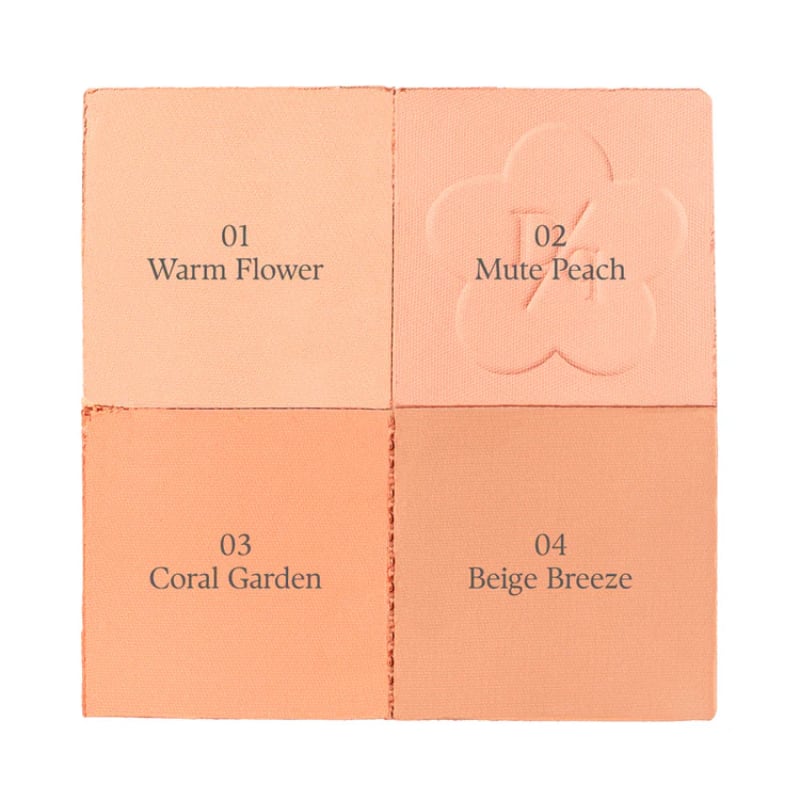 - 4 warm coral shades inspired by Osmanthus petal colors that offer highlighting and blending effects.