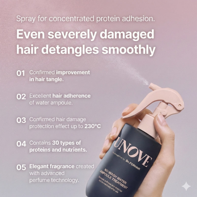 Unove, a global hair care brand prioritizing perfection, created with the technology of Dr. For Hair that embodies ‘unrealistic softness’ with best nutrition and softness, which are the essence of damaged hair care.