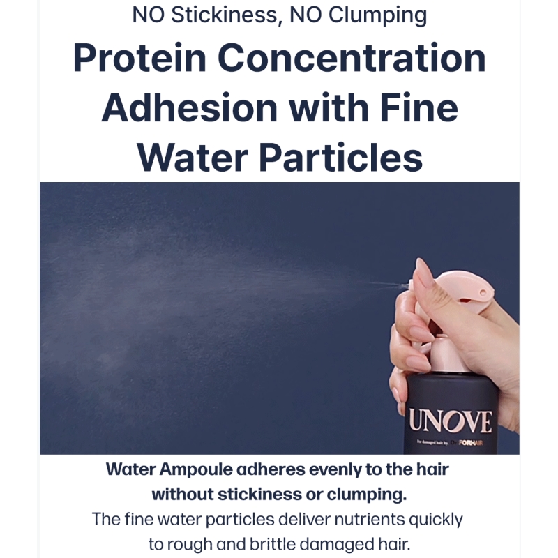 With fine water particles, it adheres to the hair evenly without stickiness or clumping, and quickly supplies nutrients to rough and brittle damaged hair.