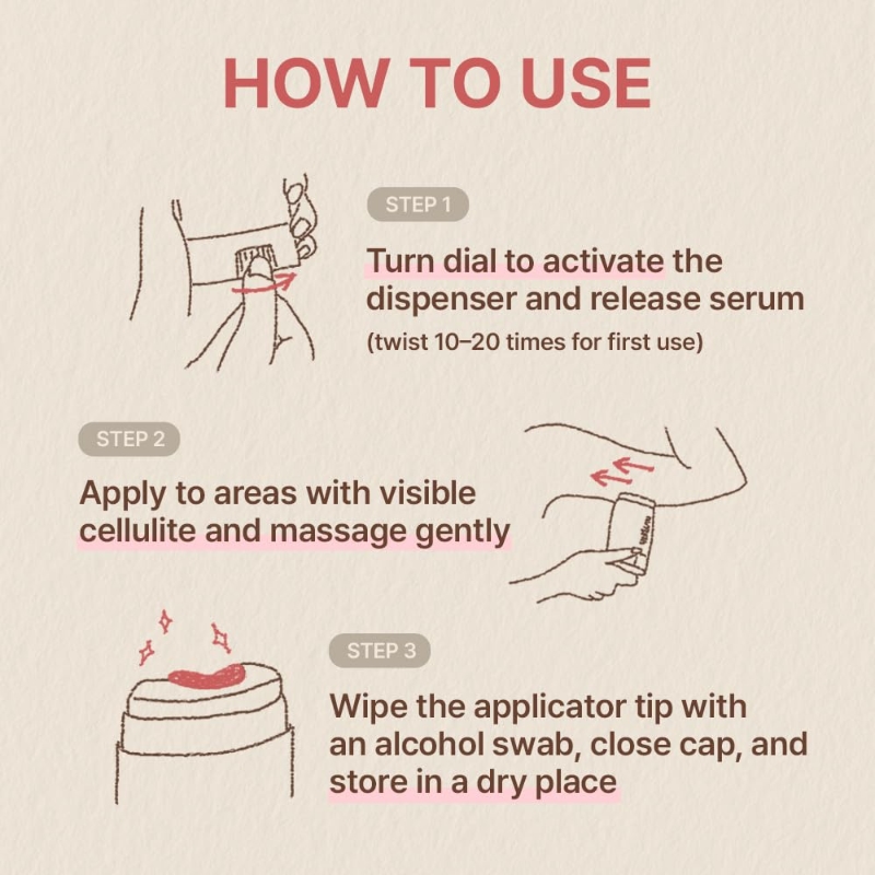 This innovative body treatment combines a high-performance firming serum with a built-in Gua Sha applicator. Designed for modern convenience and effective self-care, it allows you to massage, contour, and nourish your skin simultaneously without getting your hands messy. Whether you are looking to smooth out cellulite, relieve tension in your trapezius muscles after a long day, or simply firm up your body lines, this tool delivers professional-grade results from the comfort of your home.