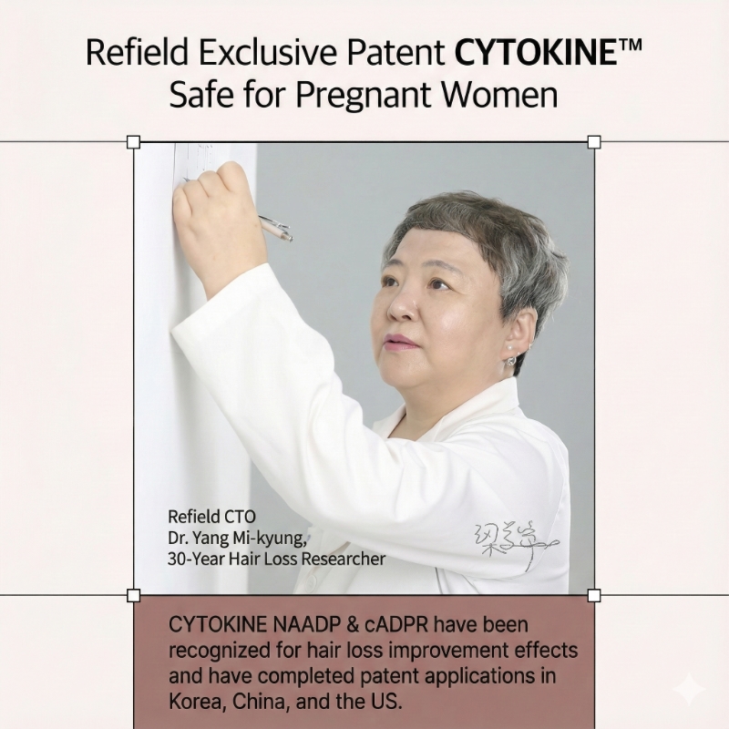 Contains patented cytokine™ of CTO Mrs. Yang who has 30 years of research expertise in scalp with hair loss.