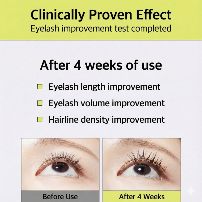 Completed clinical trial and showed improved lash length, lash volume, and hairline density after 4 weeks of use.