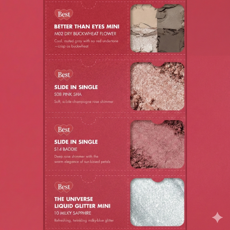 • Travel-Friendly Versatility: Perfectly sized minis allow you to touch up your glow on the go, from velvety tints to sparkling glitters.