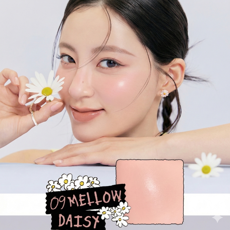 09 Mellow Daisy: A warm, toasted apricot-orange shade. Ideal for warm undertones, this color mimics a natural, sunny flush that looks healthy and vibrant.