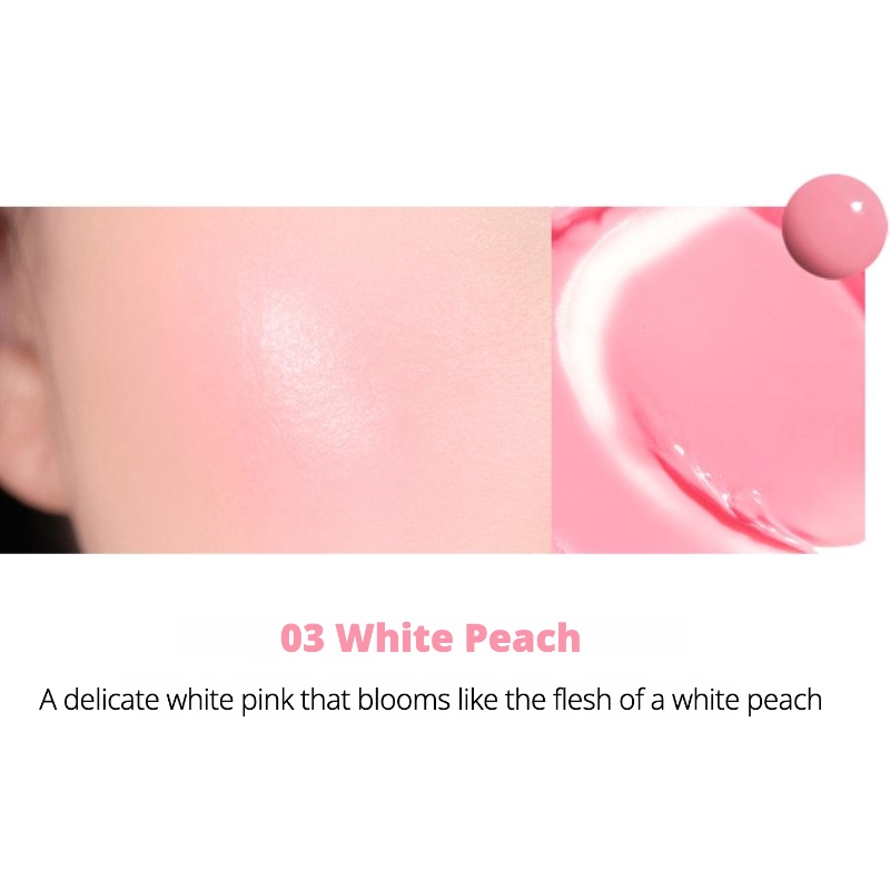This is a roll-on liquid blush set characterized by clear, vibrant, watercolor-like color payoff, capturing the essence of ROM&ND’s bestselling ‘Juicy Lasting Tint’. #03 White Peach is a soft, pure peachy shade that melts into the skin, providing fresh vitality and a dewy sheen. This special set includes an adorable Roll Keyring.