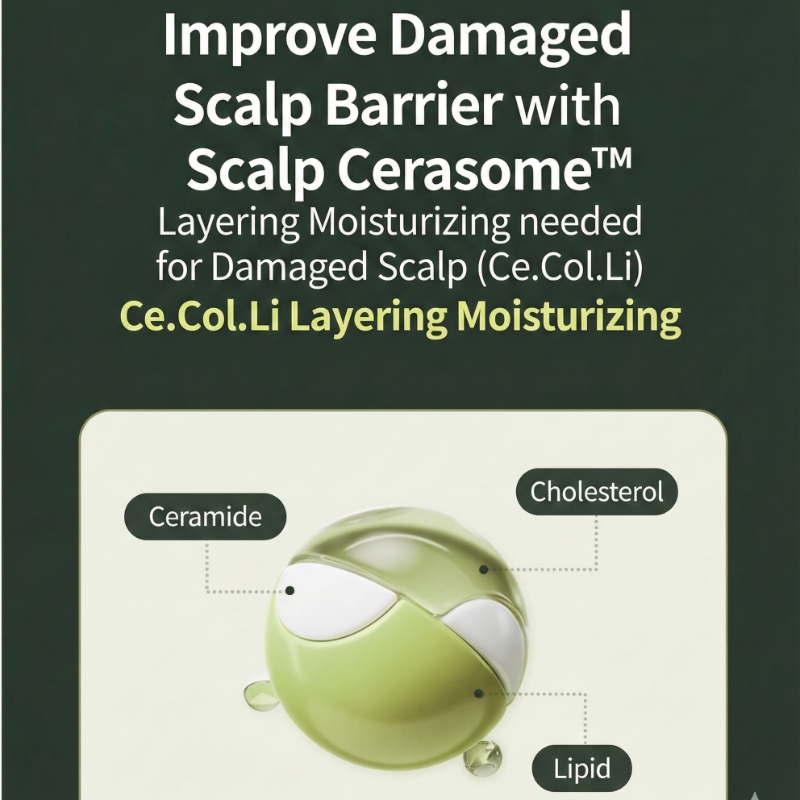Scalp Cerasome™: A potent blend of Ceramide, Cholesterol, and Fatty Acids that mimics the scalp’s natural structure to intensively repair and strengthen the skin barrier.