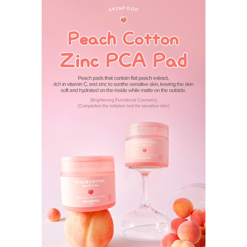SKINFOOD Peach Cotton Zinc PCA Pad 70 Pads + 30 Pads Refill (+ Stress Ball Keyring)