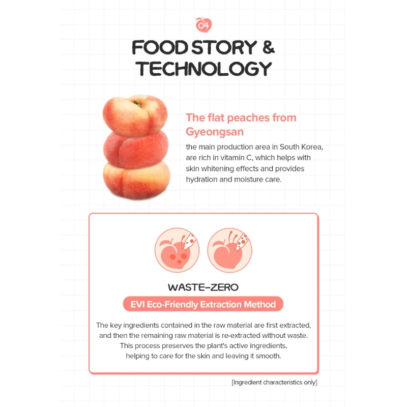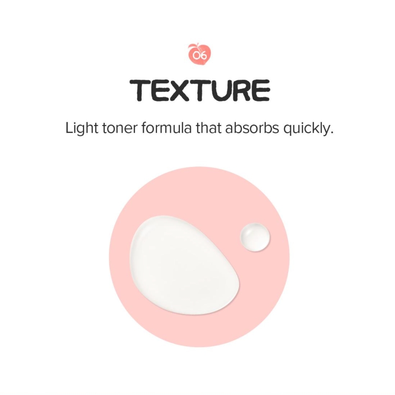Peach Extract (45%): Rich in Vitamin C and antioxidants, this primary ingredient revitalizes tired skin and helps maintain a clear, bright complexion.