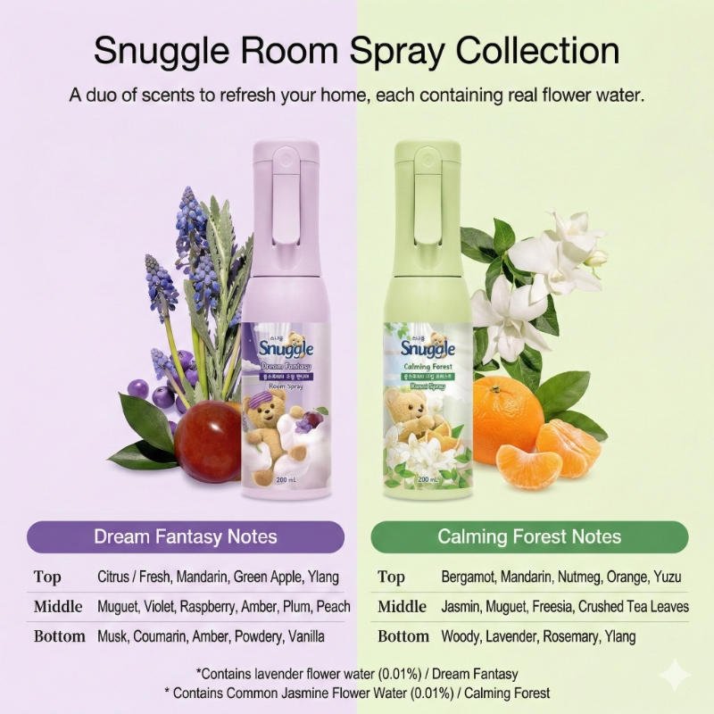 #Dream Fantasy: Water,Solvent (such as Ethanol),Fragrance (such as Dihydromyrcenol),Fumaric Acid Surfactant: Polyoxyethylene Sorbitan Monooleate (nonionic)Others: [4-(Octahydro-4,7-methano-5H-inden-5-ylidene)butanal,Limonene #Calming Forest: Water,Solvent (Ethanol),Fragrance (Ethylhexyl Salicylate, etc.)Fumaric Acid,Surfactant: Polyoxyethylene Sorbitan Monooleate (nonionic)