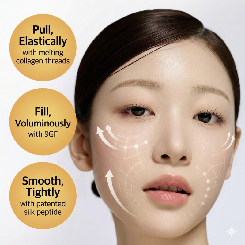 • Melting Collagen Technology: Contains visible golden collagen threads that melt instantly upon contact with the skin, delivering fresh, potent elasticity directly into the dermis without any sticky residue.