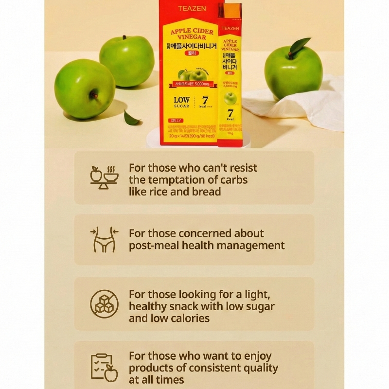 | Ingredients | Water, Liquid Allulose, Apple cider vinegar[Green Apple Extract (Green Apple: Gyeongsanbuk-do, Korea), Pyrus Malus (Apple) Concentrate (Apple: Korea)], FRUTAFIT OF (Chicory Dietary Fiber) (Netherlands) Concoction (Xanthan Gum, Locust Bean Gum, Agar), Fragrance, Lagerstroemia Speciosa Leaf Extract Powder (Lagerstroemia Speciosa Leaf: Indonesia), Processed Grains, Ctric Acid, Enzymatically Modified Stevia (Sweetener), Mixed Scutellaria Baicalensis Extracts, Trisodium Citrate, Sucralose (Sweetner), Other Processed Food, Indigestible Maltodextrin |