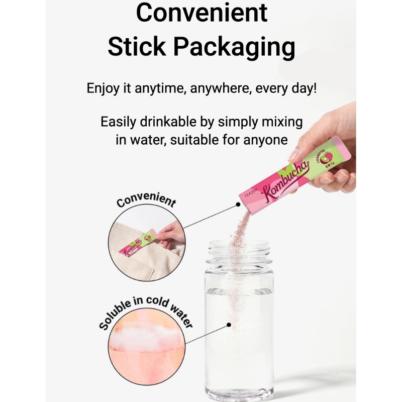 To prevent nutrient loss such as probiotics, the Teazen Kombucha powder is made through the FD (Freeze Drying) technique, where the Kombucha concentrate is dried to maintain the nutrients and flavor of the original ingredient.
