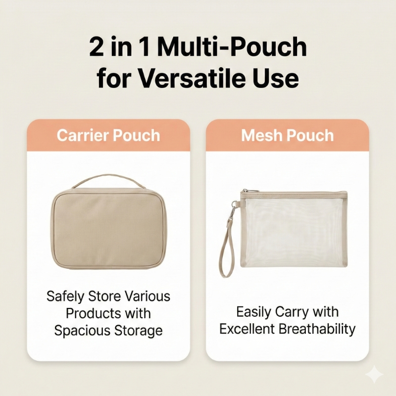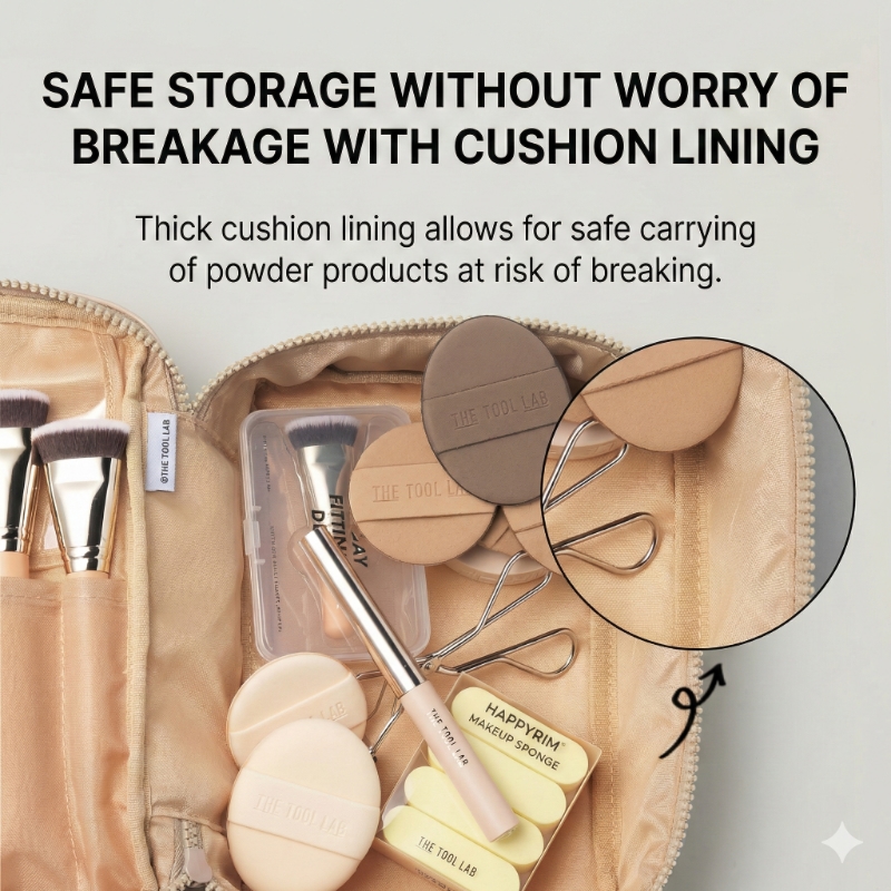 Spacious Main Compartment: Fits bulky items like cushion compacts, lotions, and heavy creams.